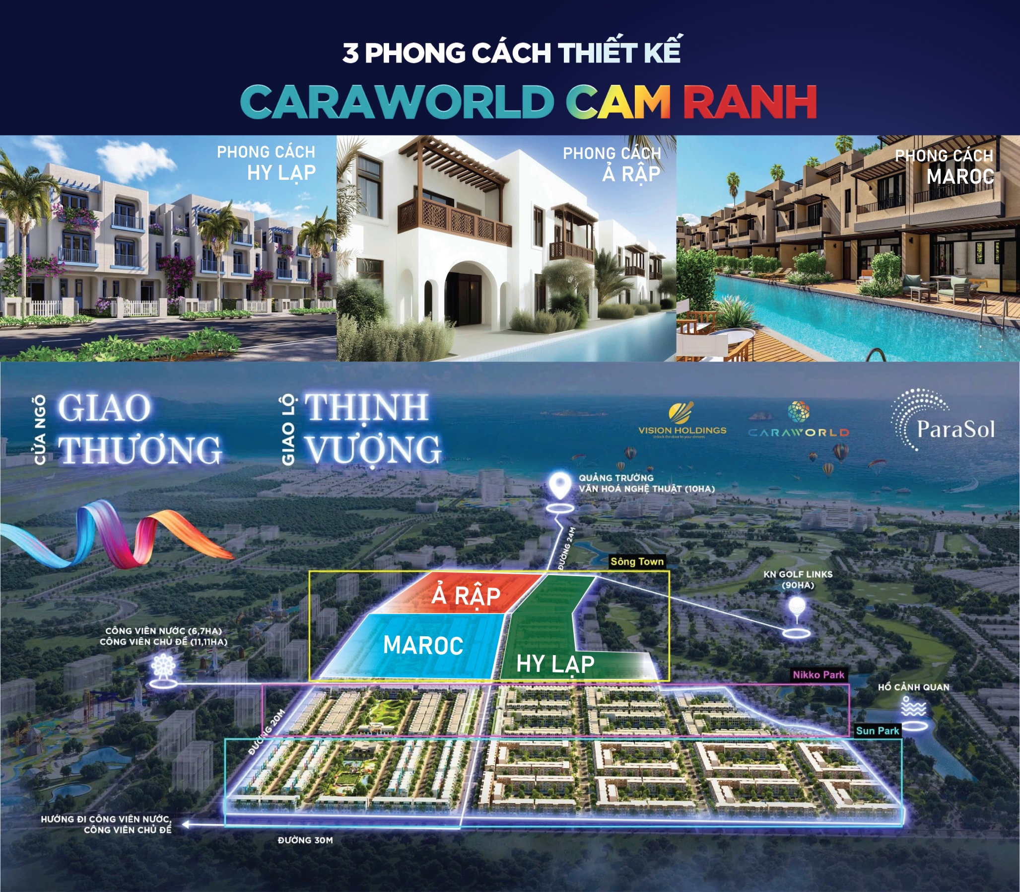 Caraworld Cam Ranh (tên cũ là KN Paradise Cam Ranh) là siêu phức hợp nghỉ dưỡng với đầy đủ công năng từ giải trí, vui chơi, thương mại – dịch vụ cho tới nghỉ dưỡng và các loại hình cư trú đẳng cấp từ biệt thự, shophouse, unique villas, mini-complex. Nằm trải dài trên 5km đường bờ biển đẹp nhất hành tinh – Bãi Dài, Cam Ranh với quy mô rộng tới 800ha đây là đô thị biển có quy mô lớn nhất Khánh Hòa.
