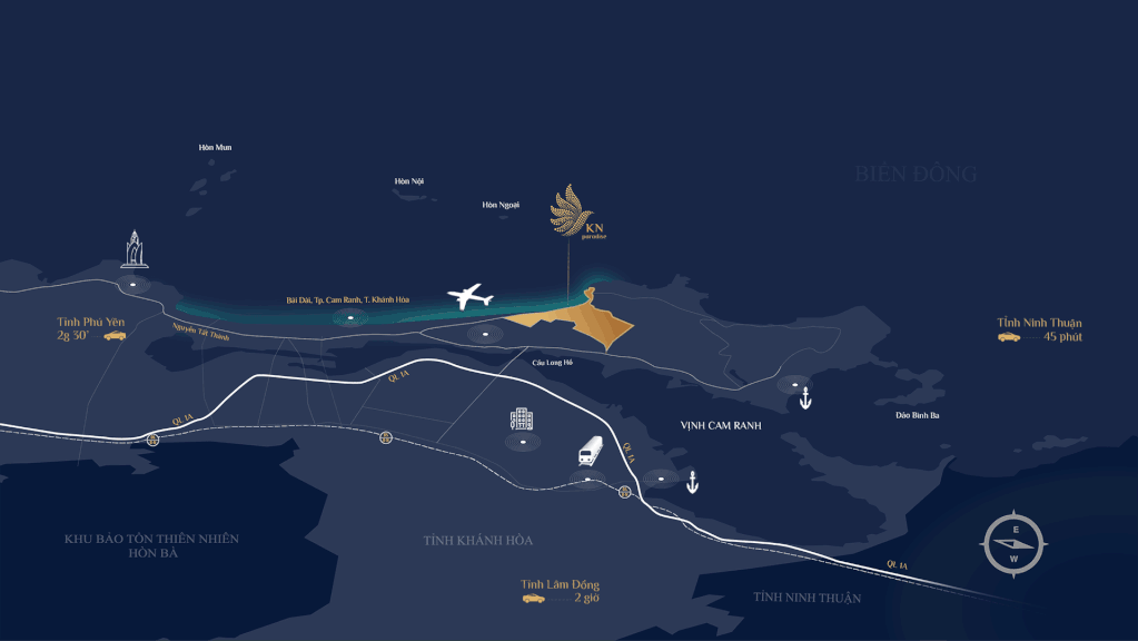 Với sự phát triển cơ sở hạ tầng mạnh mẽ, dự án còn thừa hưởng các tuyến đường cao tốc quan trọng như TP.HCM – Nha Trang, Nha Trang – Đà Lạt, và Cam Lâm – Nha Trang, giúp tăng cường khả năng kết nối. Khoảng cách từ Caraworld Cam Ranh đến các địa điểm chính vô cùng thuận tiện: