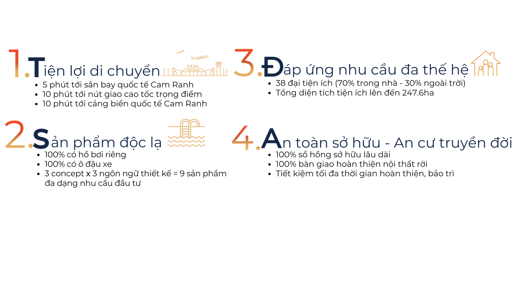 Kiến tạo một thành phố nghỉ dưỡng đa trải nghiệm, điểm đến lý tưởng cho công dân toàn cầu. Nơi lý tưởng để tổ chức các sự kiện tầm cỡ châu lục, hòa mình vào những lễ hội văn hóa đa sắc màu.